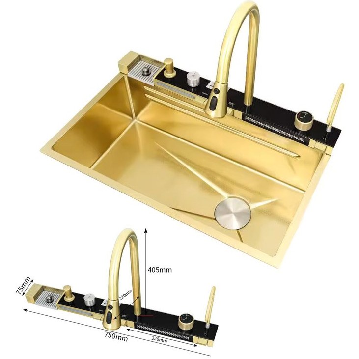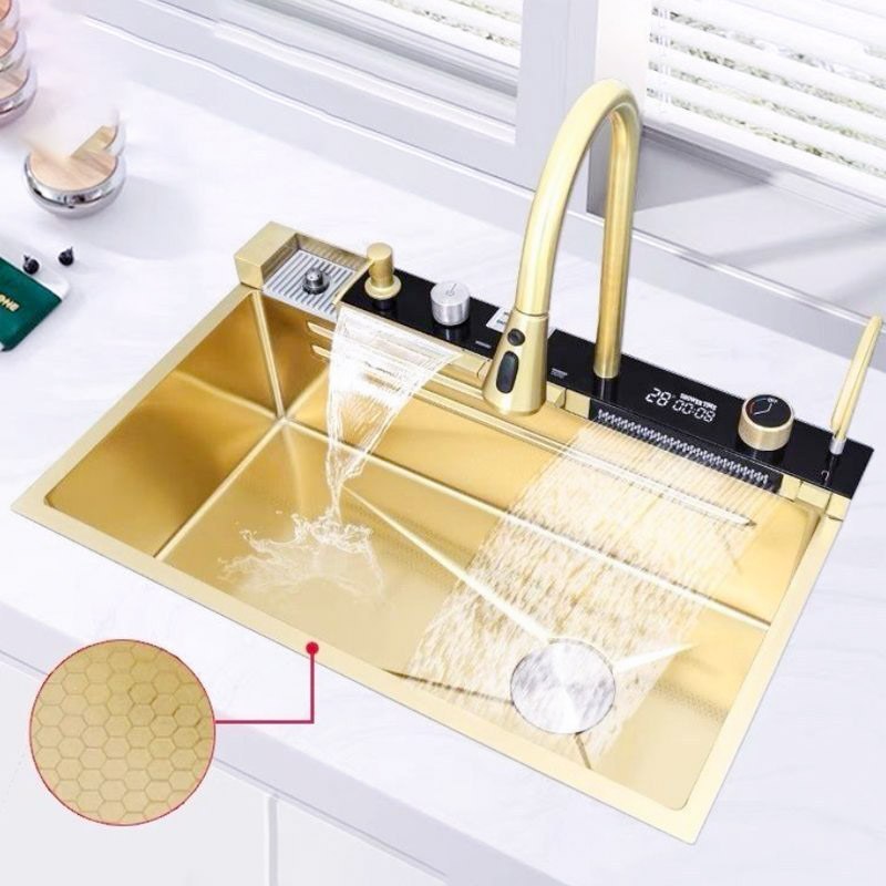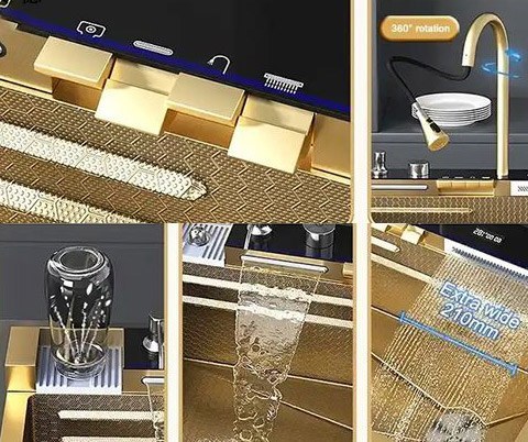 با سینک پیانویی ۵ کلید طلایی سایز 46×75، آشپزخانهتان را به اوج زیبایی و کارایی برسانید! طراحی منحصربهفرد و رنگ طلایی این سینک، جلوهای لوکس به فضای شما میبخشد. جنس مقاوم و ضدلک آن، نظافت را آسان کرده و دوام بالایی را تضمین میکند. همین حالا با این انتخاب هوشمندانه، کیفیت و زیبایی را به خانهتان دعوت کنید!